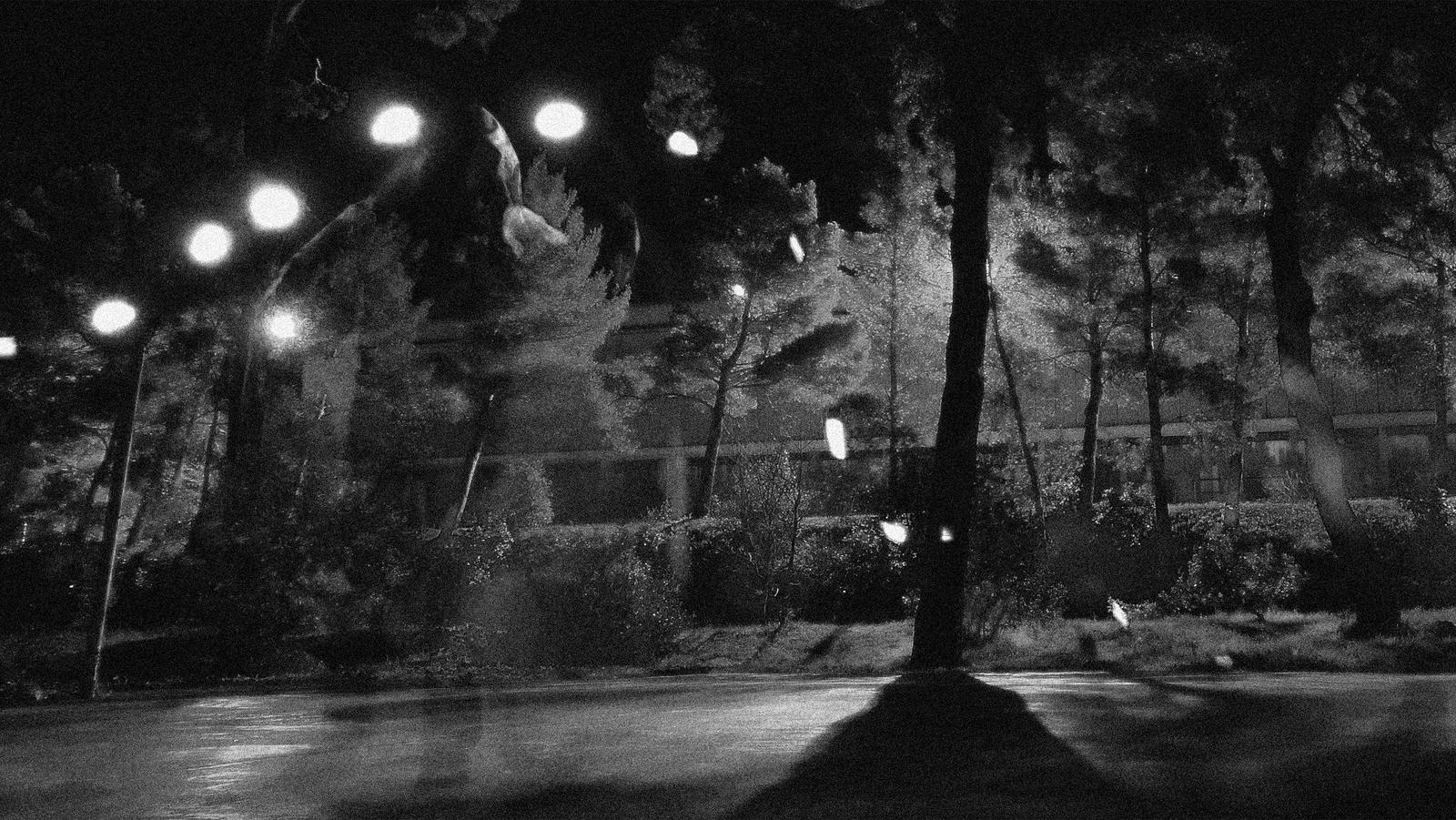 Photographies nocturnes, pose longue – Mises en scène de « spectres », photos utilisées comme accessoires pour la scène de développement de Le Laboratoire des Morts, campus de Luminy – 2013
