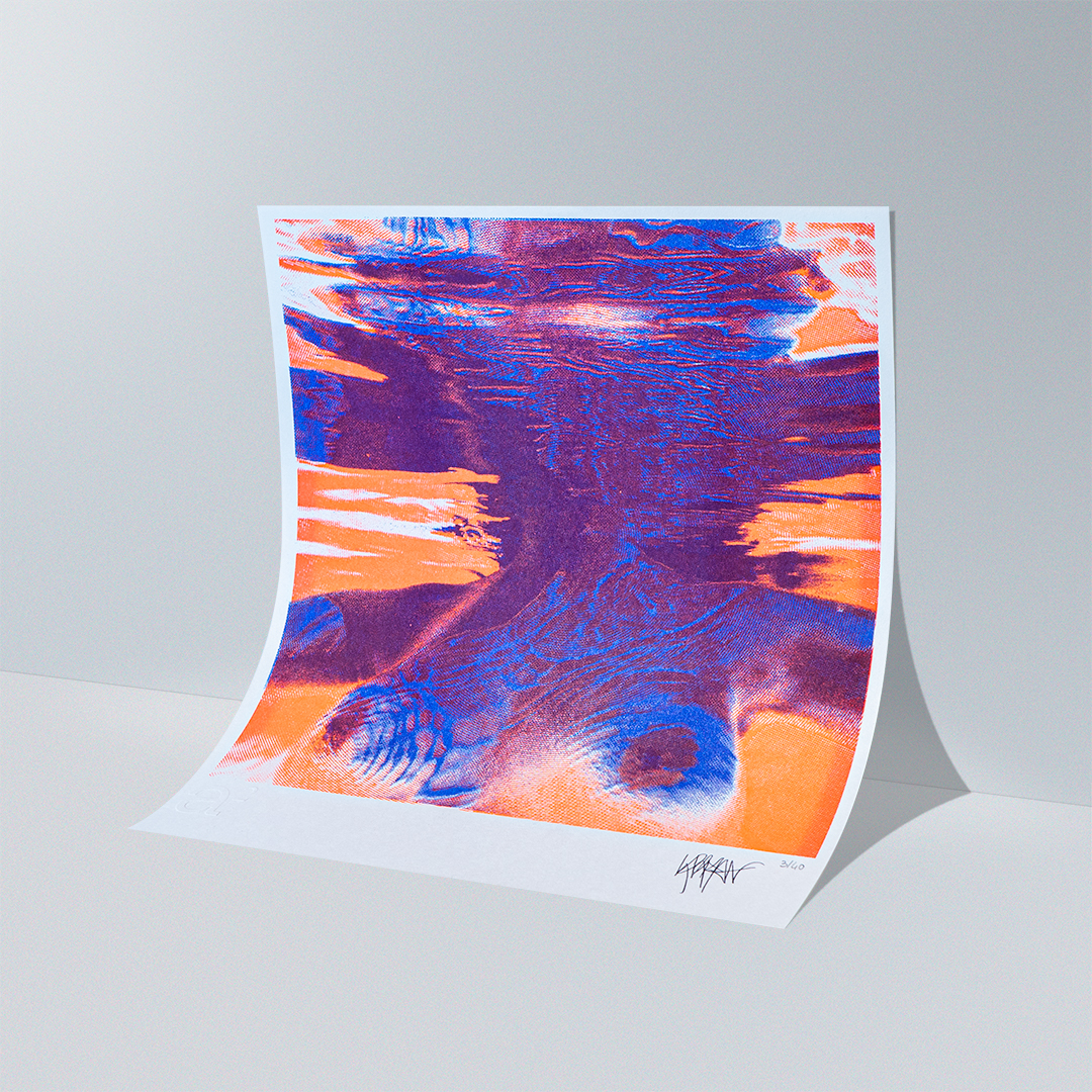 Ce tirage riso est une variation d’une de mes compositions numériques datant de 2017 visible ici