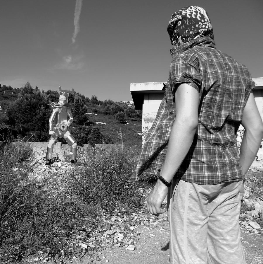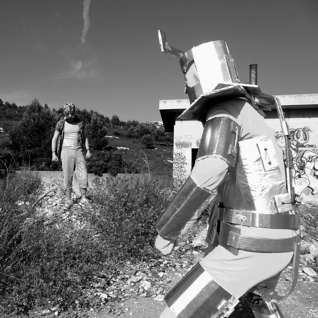 Teaser photographique en diptyque pour Yoshihiro, The Mad Metal Man, première version des costumes, campus de Luminy – 2012
