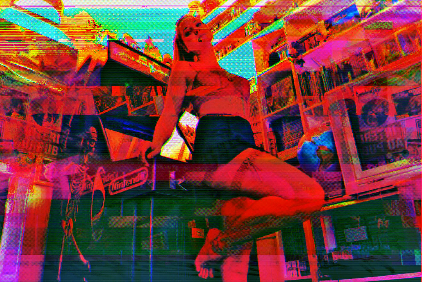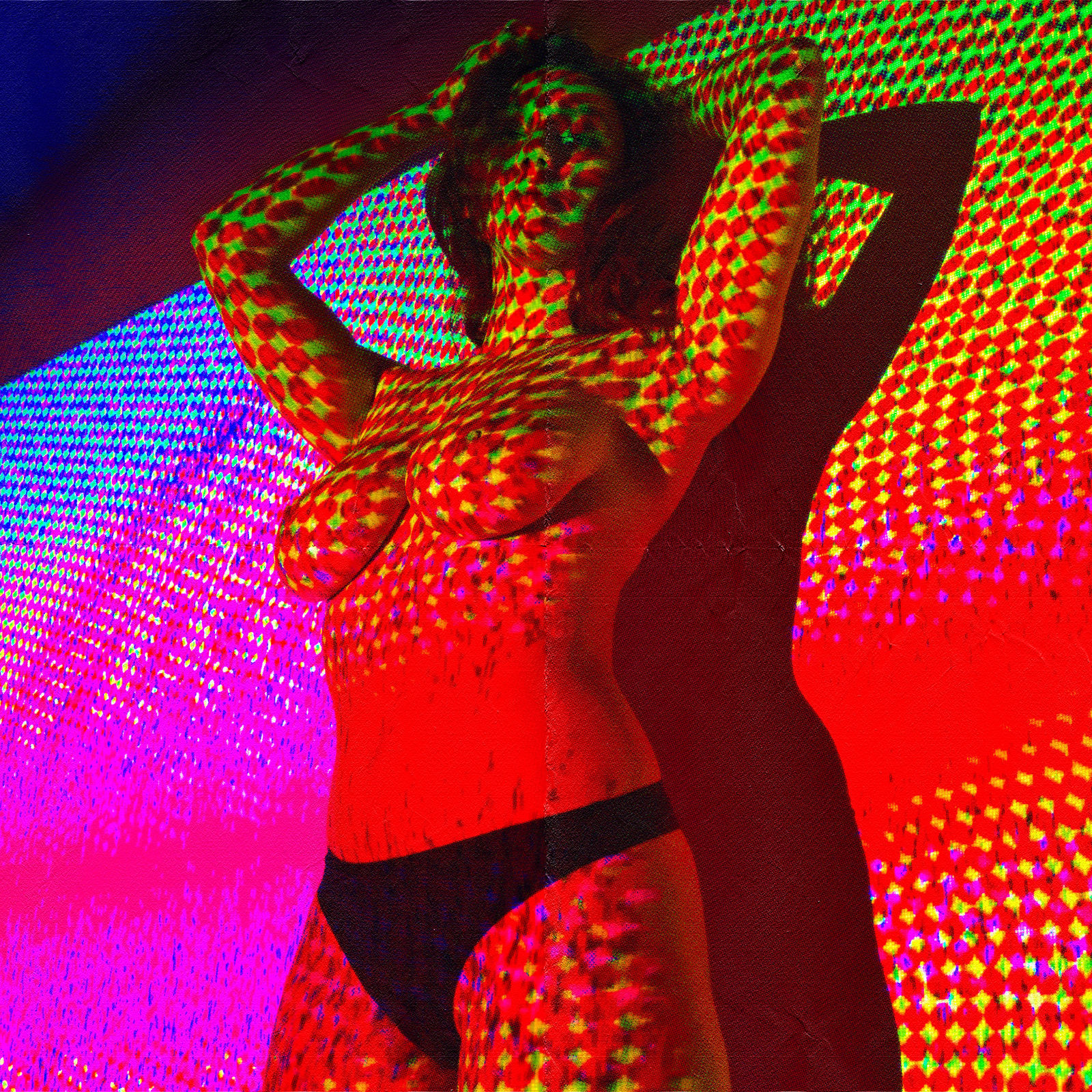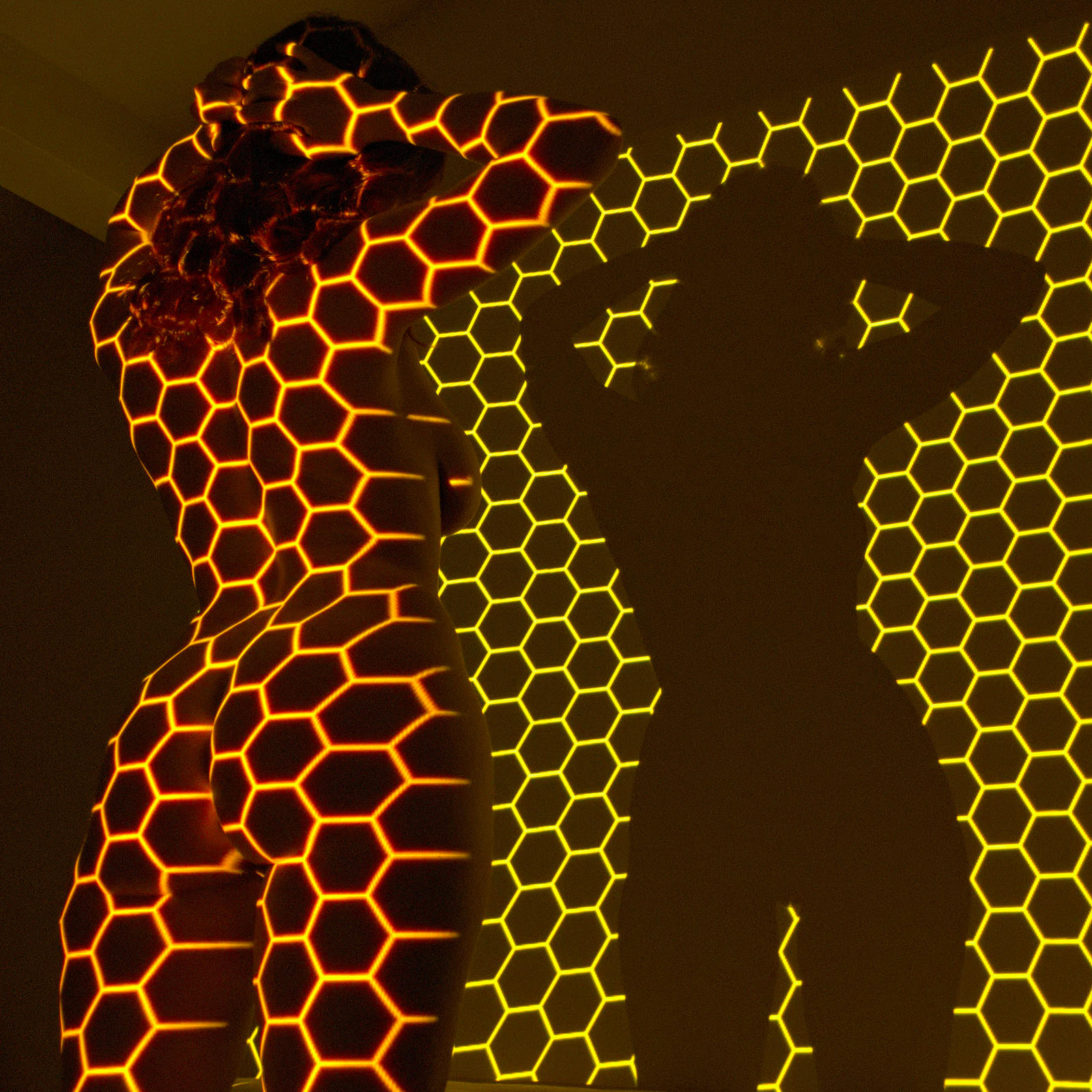 Photographies numériques, Polaroid et interventions numériques diverses, séance photo avec vidéoprojecteur sur modèle – 2019