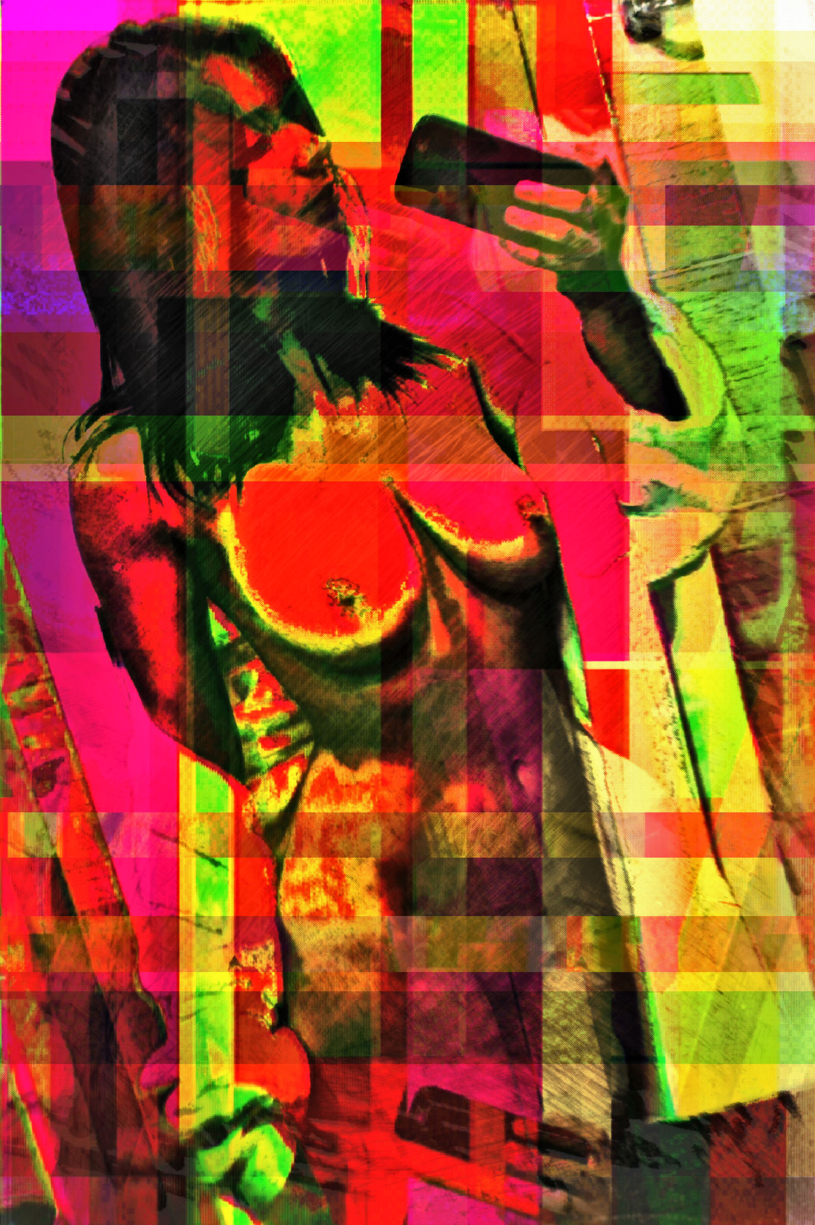 Suite de la série de travaux sur les selfies, reçus et retouchés sur smartphone puis finalisés sous Photoshop